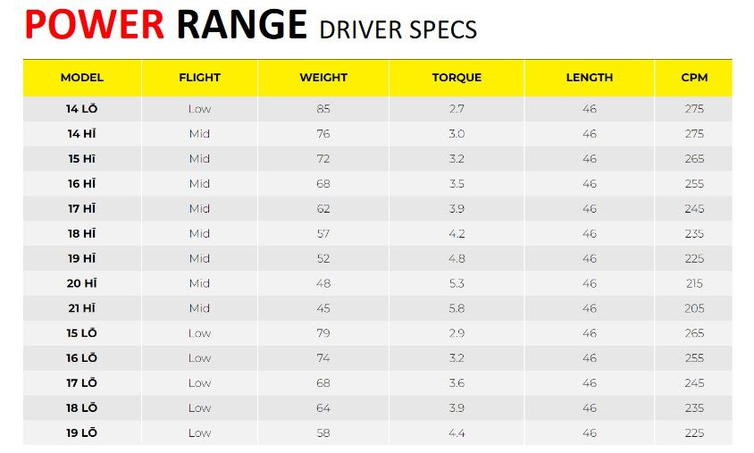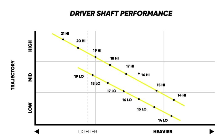 Ne cherchez pas les standards de codification des shafts chez TPT ! On ne parle plus de rigidité (regular, stiff…), ni même de poids. Ici, on a un numéro et « Hi» ou « Lo » par rapport à une préférence ou une optimisation d’un angle de décollage de la balle lors de la frappe.