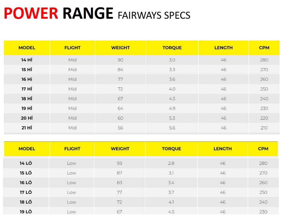 Vous trouverez néanmoins ci-dessous les spécifications des shafts TPT. Du lourd ou léger, ces shafts sont tous simplement exceptionnels de précision et les sensations lors du swing, inégalées.